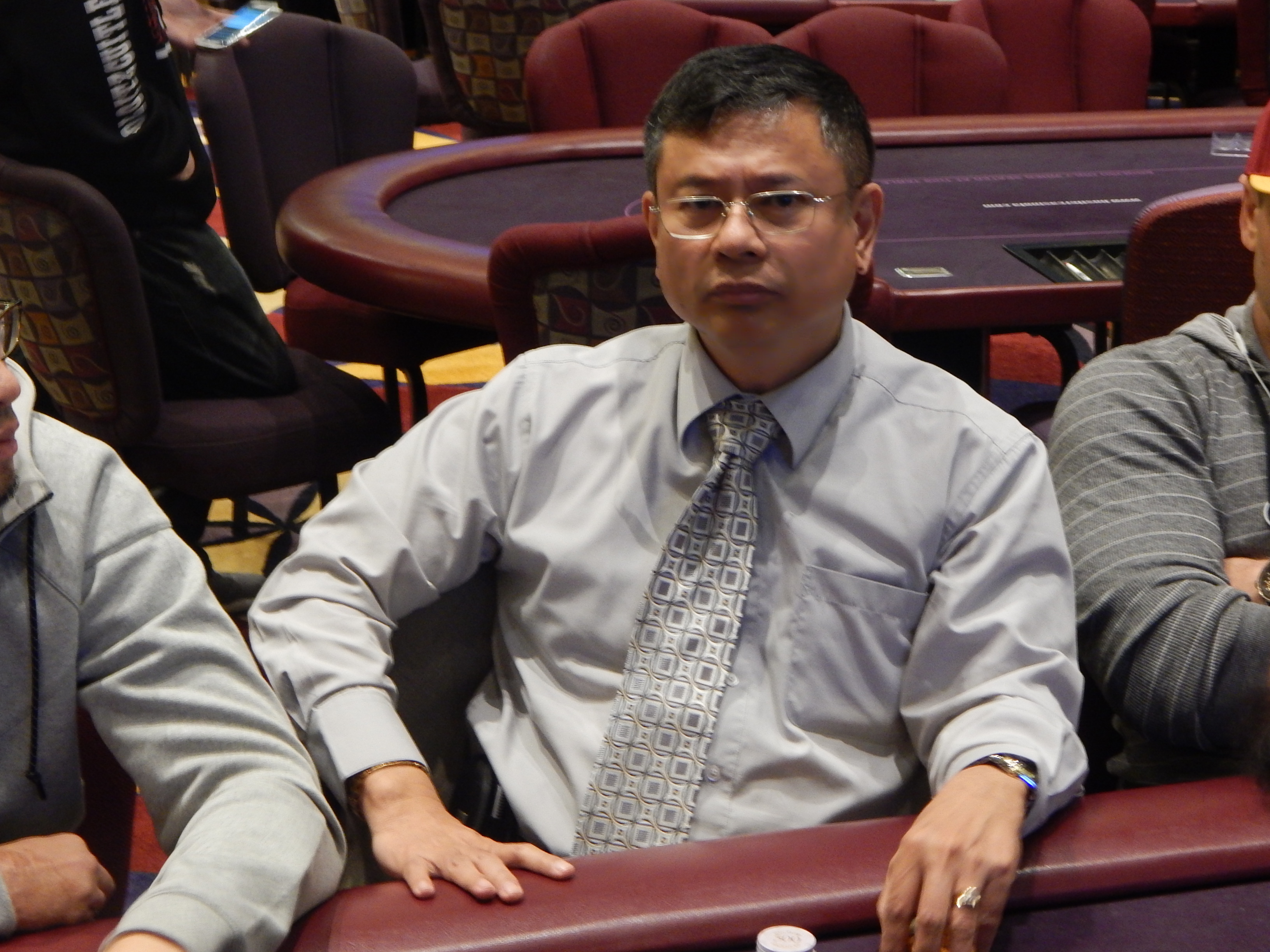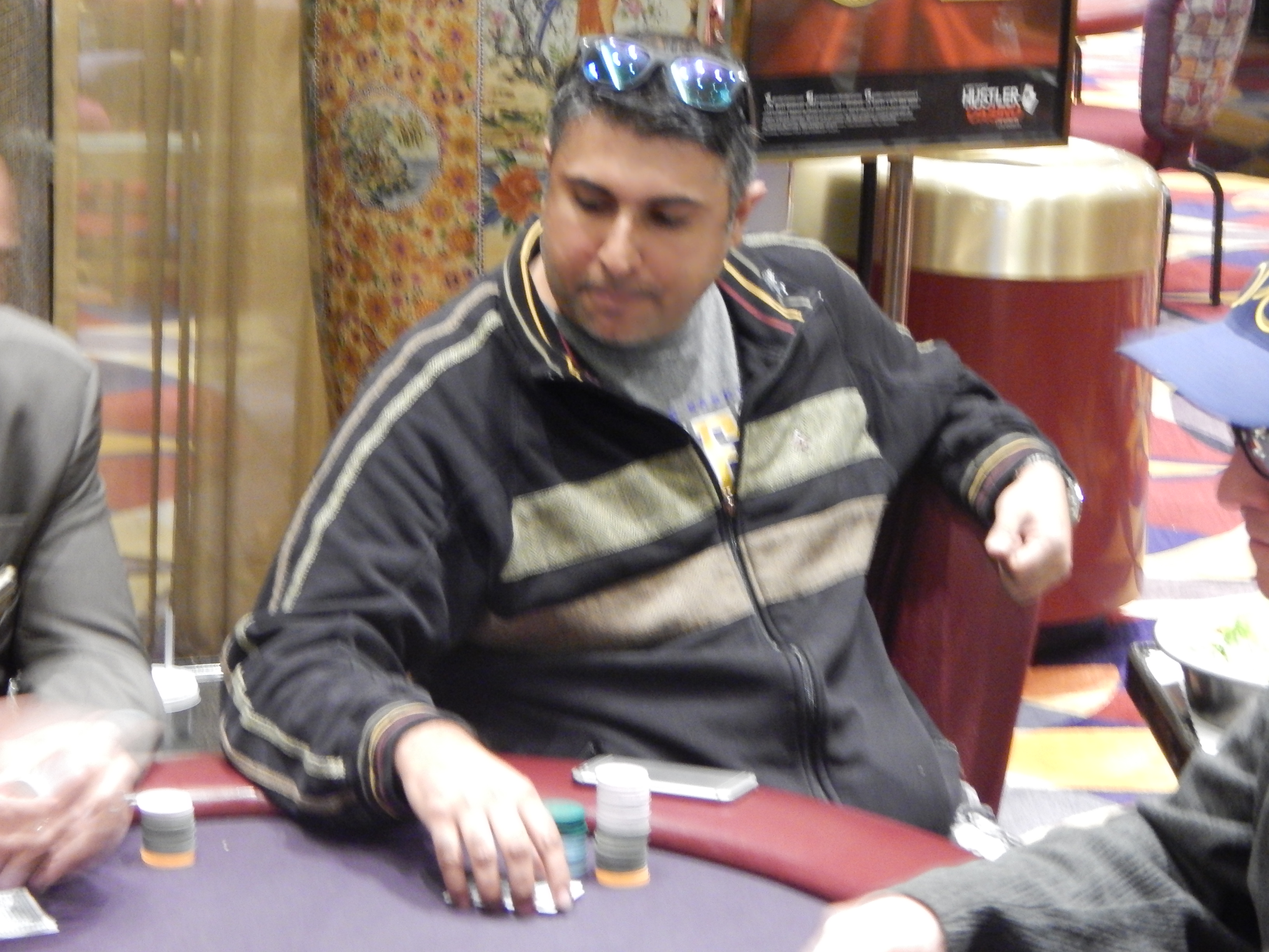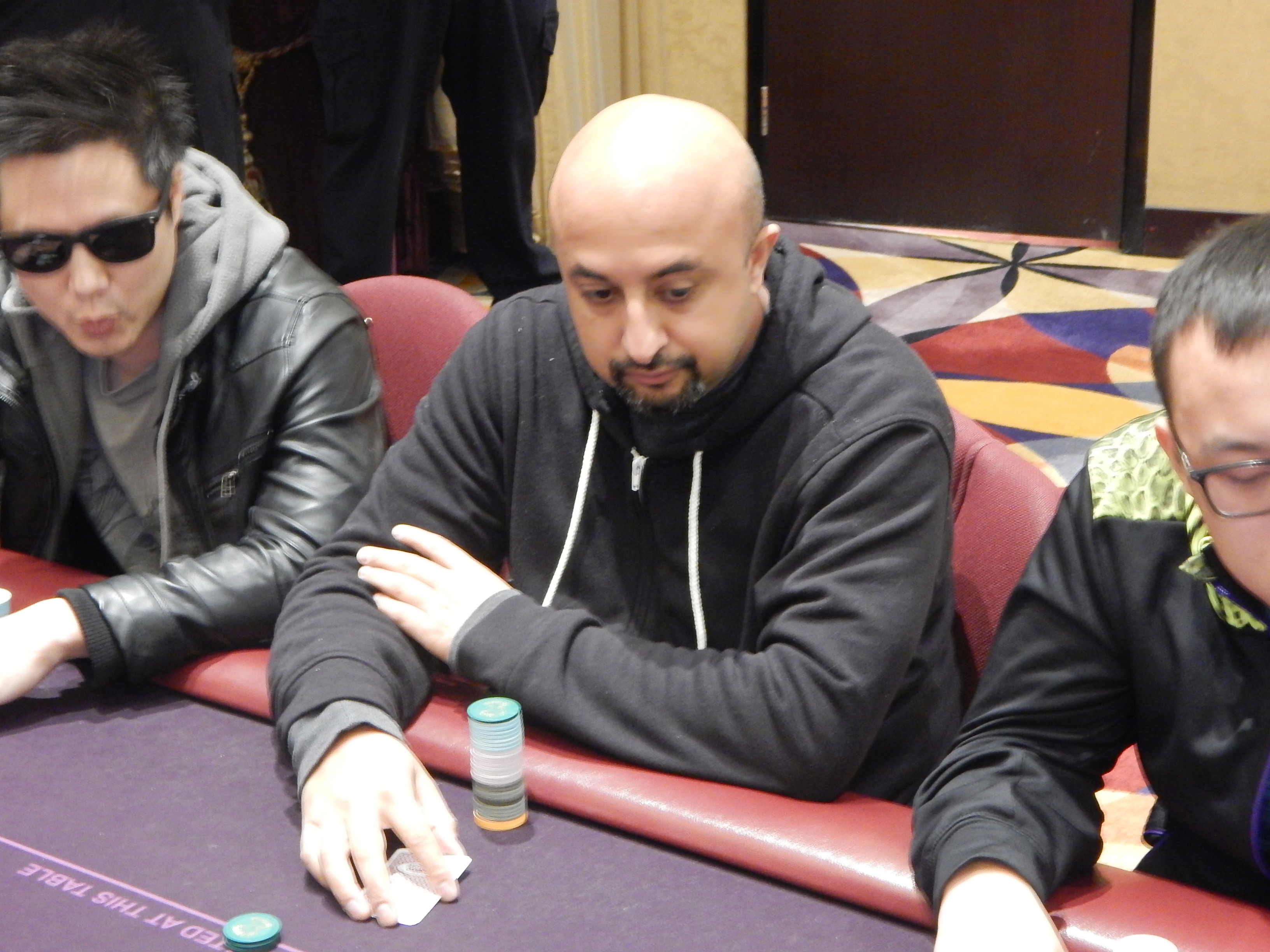 The final flight of this Championship event is in full swing here in the Crystal Room, and the numbers keep growing as the night moves on. Below you will see a list of some of the notables who are here trying to claim a last second ticket to the finals tomorrow. On this list is Massoud Eskandari, who has quickly built up a huge stack already in Level 2. In fact, fellow player Gerald Huynh joked that he already has a Day 2 average stack. Well Eskandari has a long way to go yet, but it’s certainly a great start. Check out a few more photos below, and be sure to come back in the morning for a final list of qualifier.