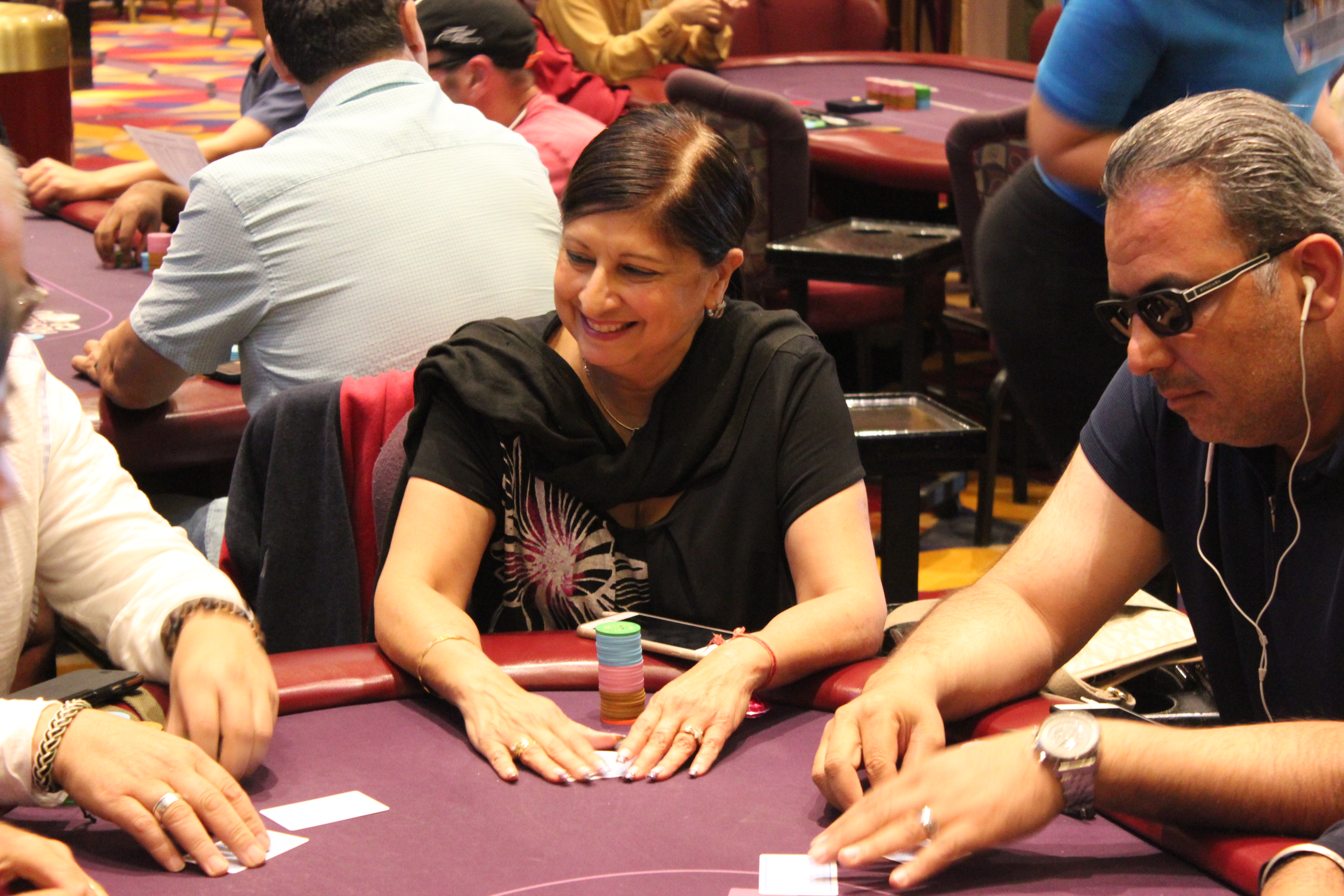 Flight 1E of this event is currently underway, and even more familiar faces showed up today to try to get a piece of the biggest guarantee of the year. Some of these familiar faces include the mother and son duo of Nikhil Gera and Manju Gera. They are sitting right beside each other, but at different tables. Who knows what kind of fireworks could occur if they were sitting at the same table. Stay tuned for an interview with Manju later!