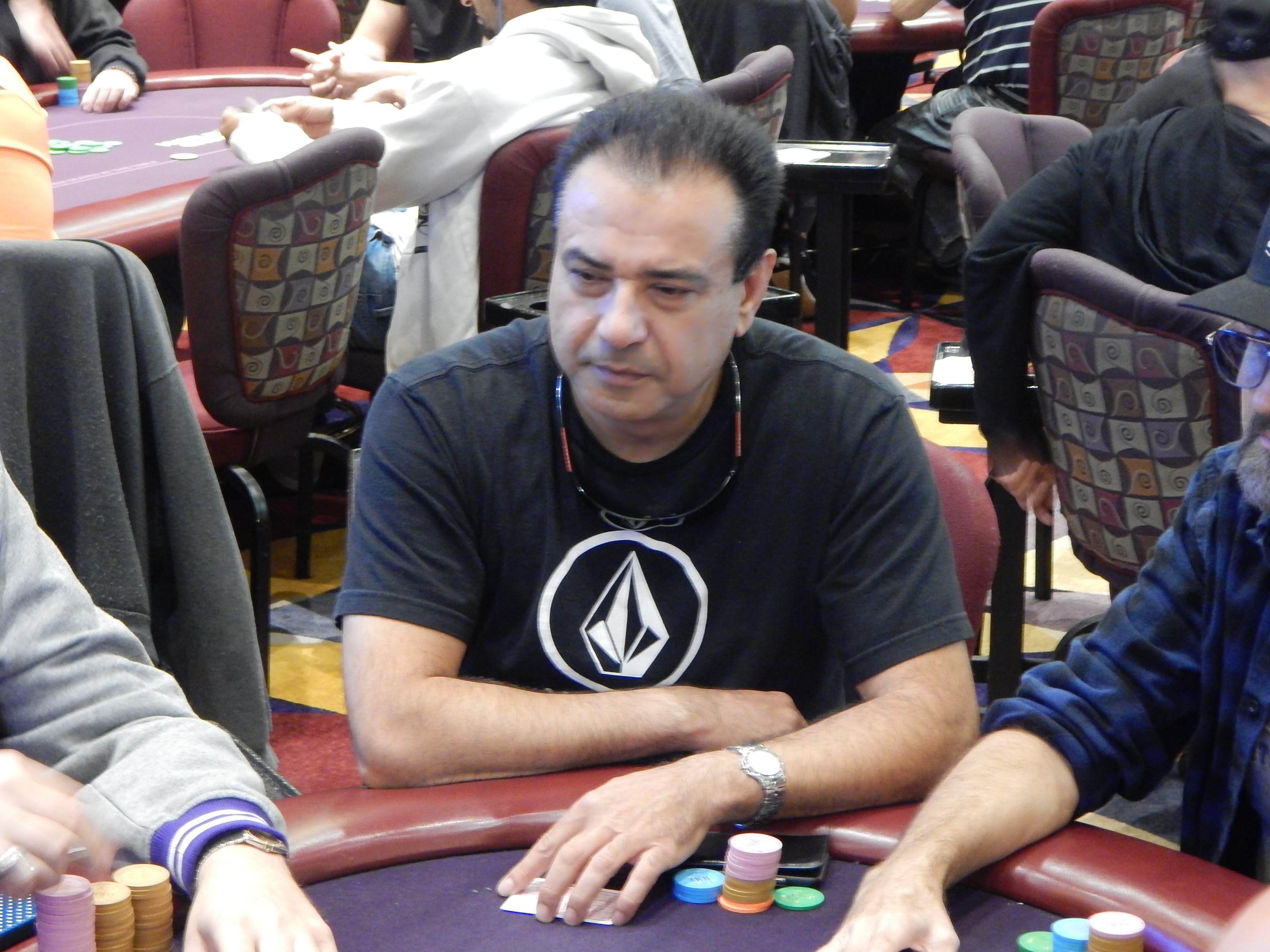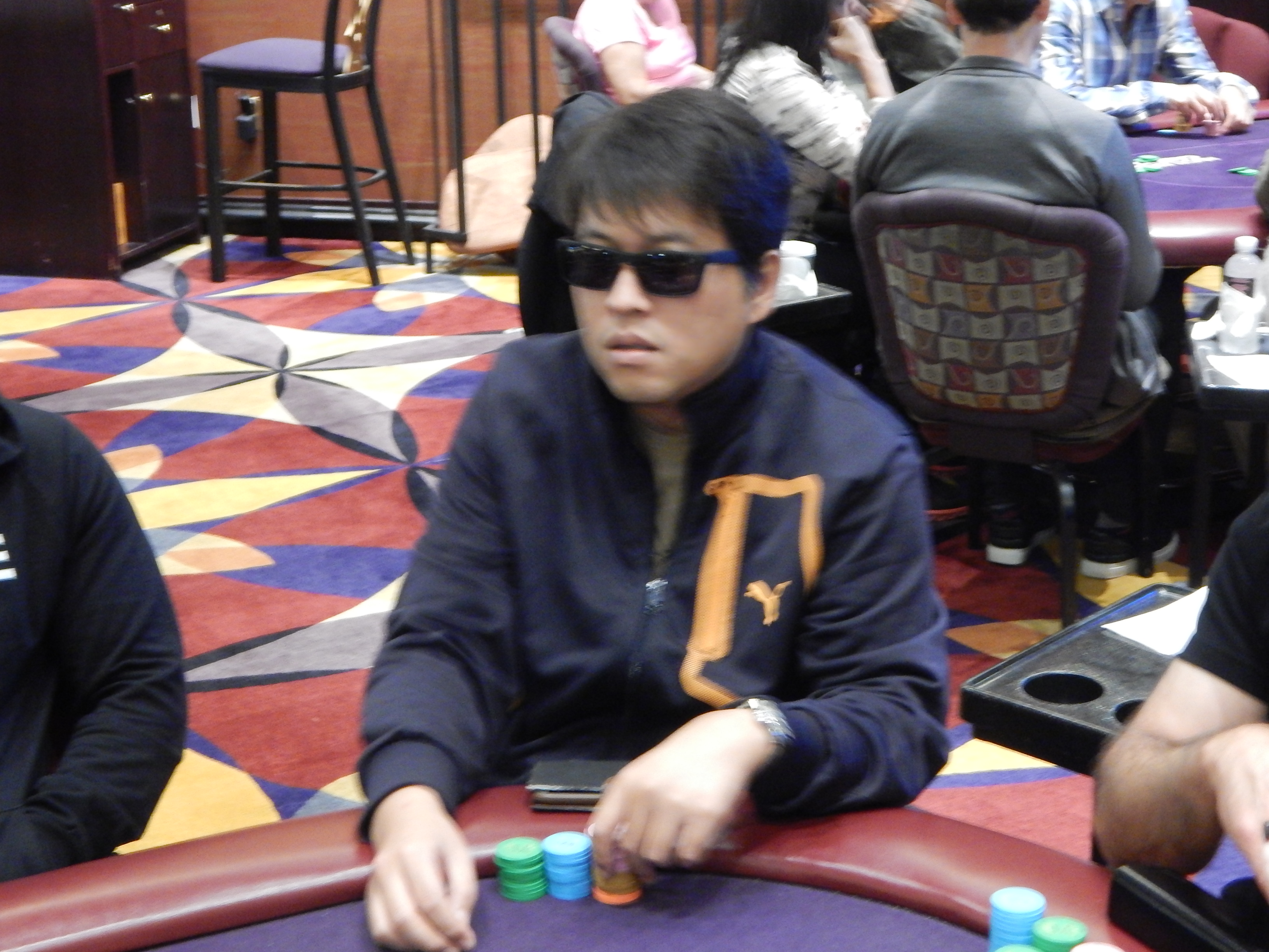 Our first round of player photos shows a few players who have experience going deep in a tournament just like this one. Massoud Eskandari final tabled two major events at last year’s Grand Slam of Poker, winning one of them after a chop was made. He’s in the building, along with the inagural WPT500 winner Sean Yu, as well as Patrios fan Jared Griener, and local pro Lawrence Ma, who couldn’t help but to wince a bit as his cover was blown when we snapped a photo of the talented player.