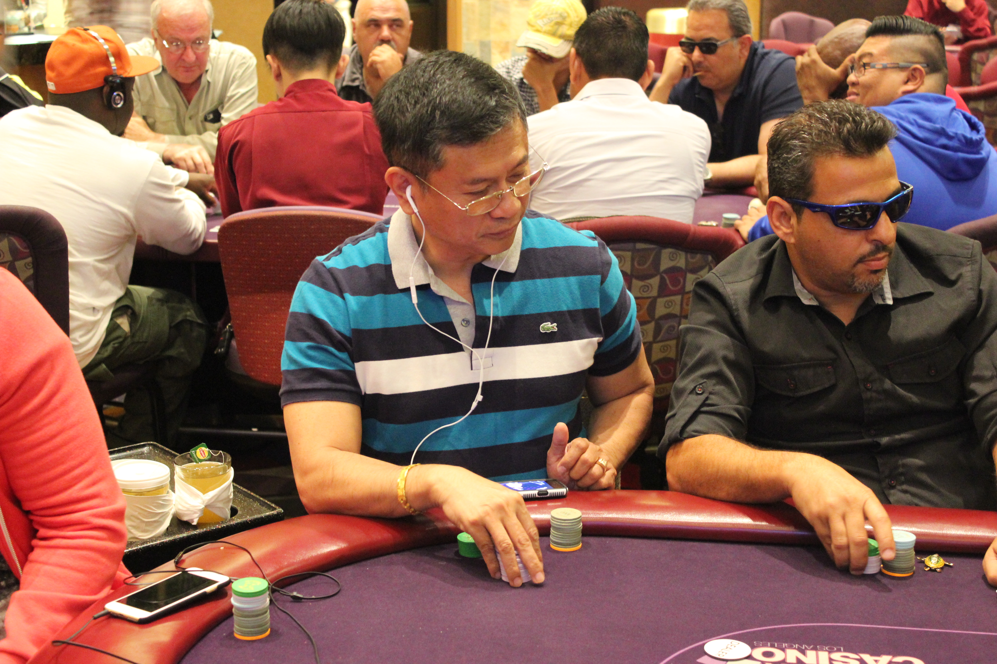 Flight 1F has been running for almost 2 hours now, and we noticed some familiar faces in the Crystal Room. Manju Gera unfortunately busted from the earlier flight, but wasted no time jumping into the second flight of the day. Eugene Tito is also here in grind mode, trying his best to double qualify yet again and to get his hands on an extra $2,000 in cash.